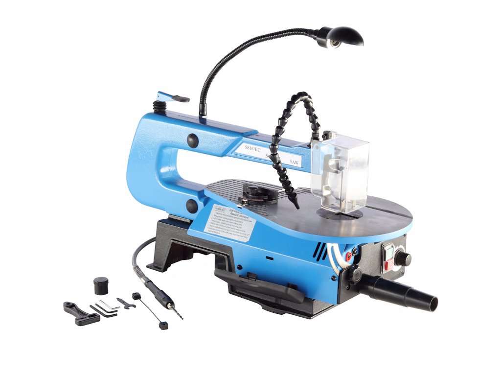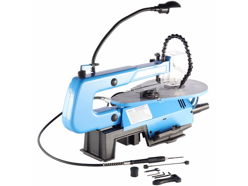 Elektromos alakkivágó fűrész, minőségi mangánacélból, a fűrészlap egyszerűen befogható. Kiegészítő lámpával és furatok fúrásához hajlékony tengellyel is el van látva.