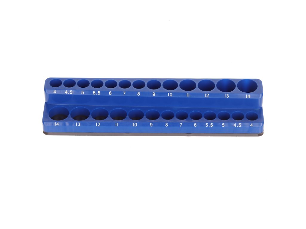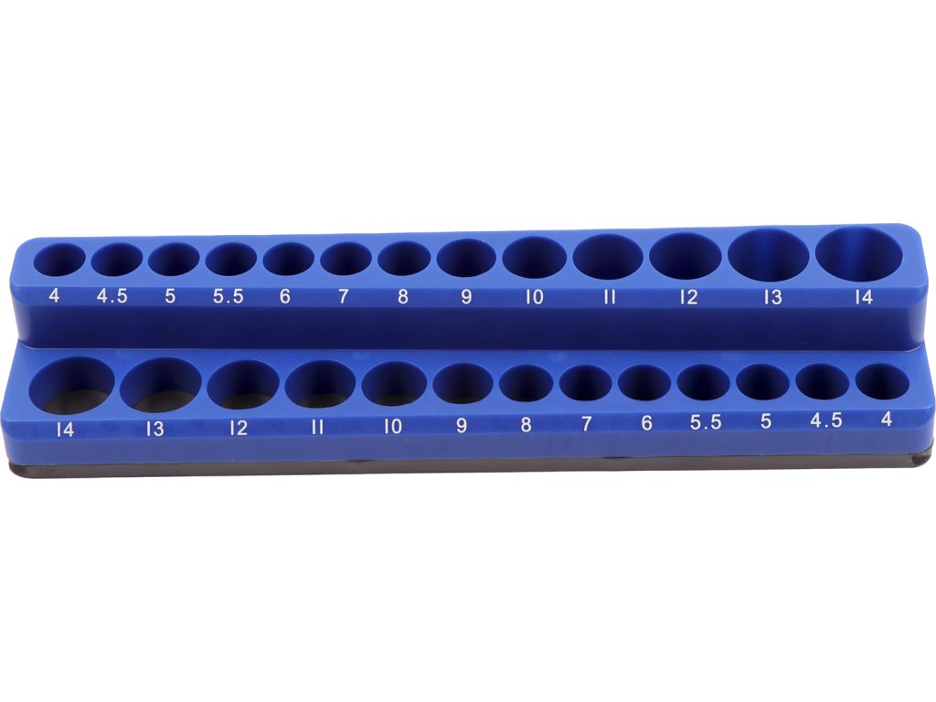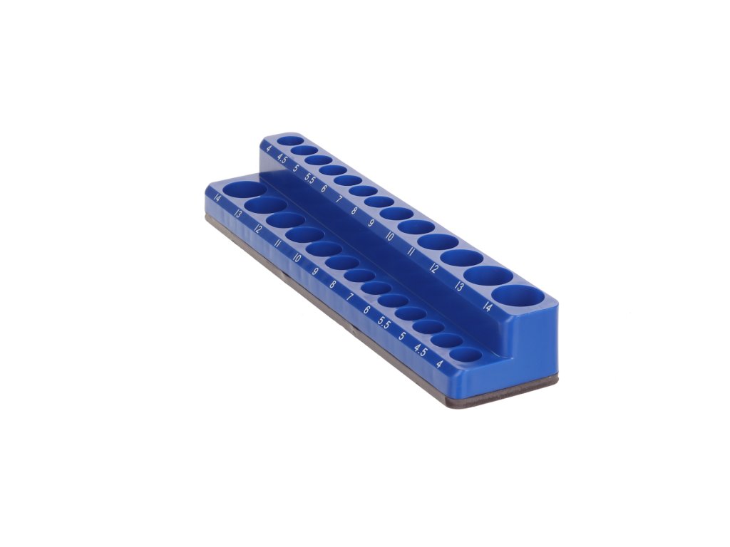 Tiszta tárolás 13 db rövid és 13 db kiterjesztett GOLA anyához 4 –14 mm, PP anyag, méretek 235 × 55 × 35 mm, terhelhetőség 0,5 kg.