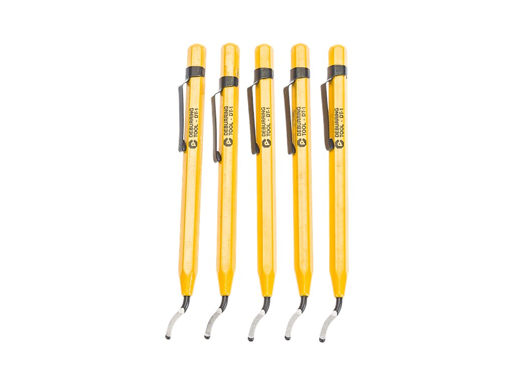 5 darabos kézi élletörő készlet, fém fogantyúval és különböző alakú, minőségi gyorsacél élekkel.