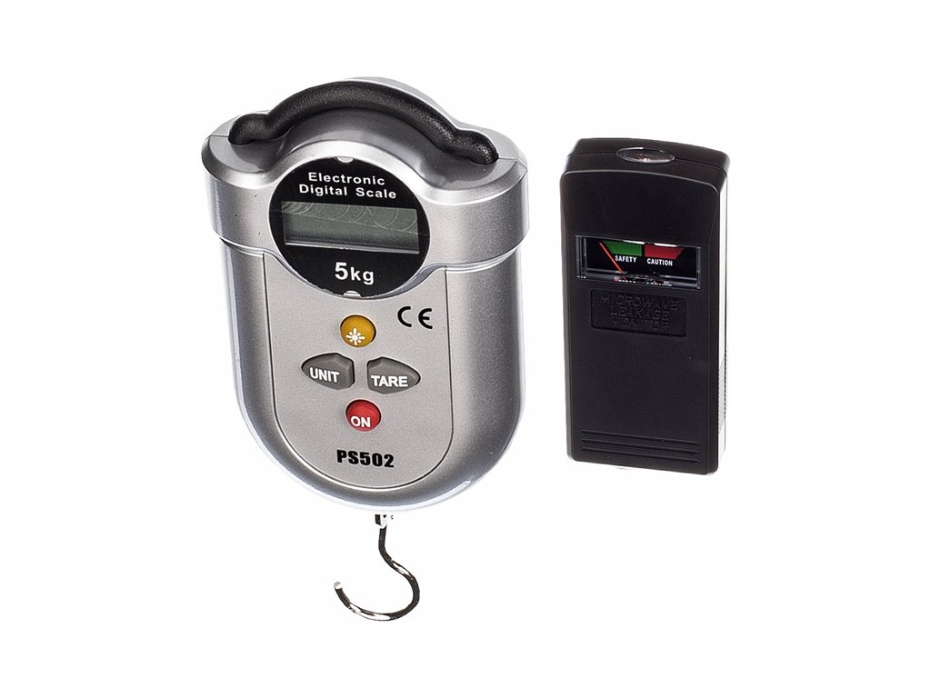 A készletben a felfüggesztett terheket 5 kg-ig mérő mérleg és egy mikrohullám-mérő készülék található. A mikrohullám-mérővel a háztartásokban kibocsátott mikrohullámokat (pl. mikrohullámú sütő, mobiltelefon stb.) lehet megmérni. A háttérvilágítással rendelkező LCD kijelzővel felszerelt digitális mérleggel 0,01 és 5 kg közötti terheket lehet megmérni, a pontosság 200 g-ig ±1 g, 200 g felett ± 0,5 %, környezeti hőmérséklet 0 és 50°C között, tápellátás 3 × 1,5 V (AAA), méret 114 × 70 × 30 mm. A mikrohullám-mérőn 2 kijelző található: a zöld a biztonságos sugárzást, a piros a veszélyes sugárzást mutatja. A készülék nem igényel tápellátást, frekvenciatartomány 3 MHz – 30 GHz, környezeti hőmérséklet 0 és 40°C között, méret 45 × 100 × 22 mm.