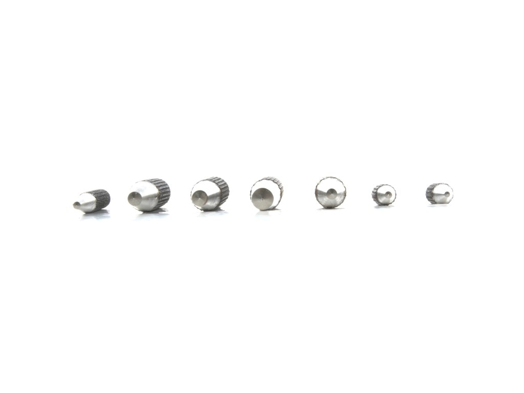 A pontozó készletben a következő méretek találhatók 1,5; 2; 2,5; 3; 4; 5; 6 mm.