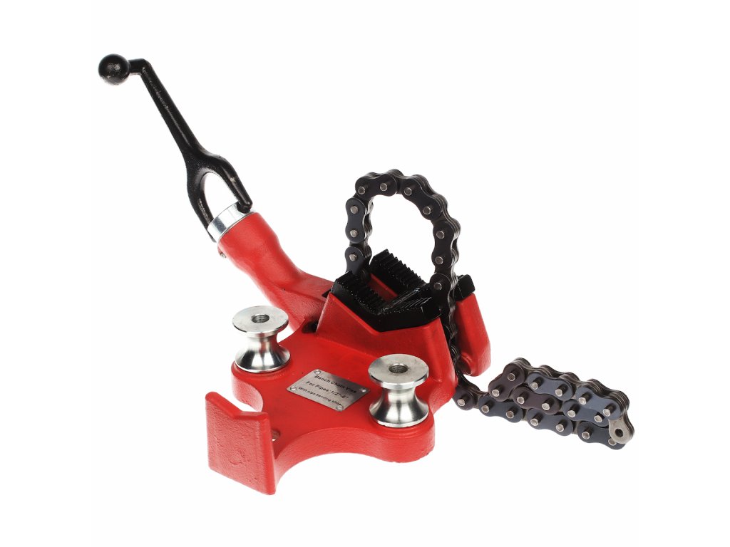 Robusztus satu 12 - 150 mm (1/2" - 6") átmérőjű csövek lánc segítségével történő befogásához, menetvágáskor, hajlításkor, stb. Öntöttvas alap, támasztóláb, edzett acél pofák, kilincses láncfeszítés, nyílás a munkalaphoz rögzítéshez.