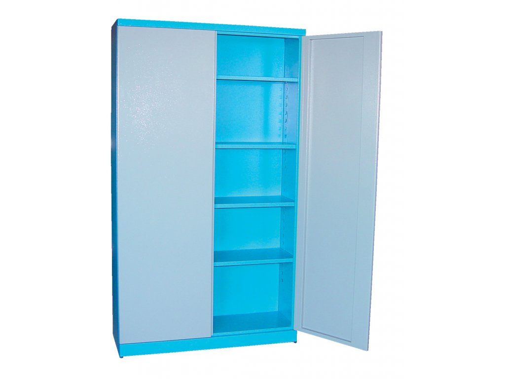 Fém szerszámosláda, amelyet otthoni és szervizműhelyekben, gyártóüzemekben stb. való használatra terveztek. Felszerelés: kétajtós szekrény hengeres/tengelytávzárral (→ dupla zárral, 2 gombos); négy kivehető polc (→ opcionális magasságbeállítás, terhelhetőség: 50 kg). Felépítés: acélkeret lábazattal (→ 1,920 x 1,100 x 380 mm, lekerekített élek). Porbevonat, szín: RAL 5015 (korpusz), RAL 7001 (ajtó). Összeszerelt állapotban szállítva.Szélesség: 1.100 mmDepth: 380 mmHeight: 1.920 mmEquipment: 4 polc