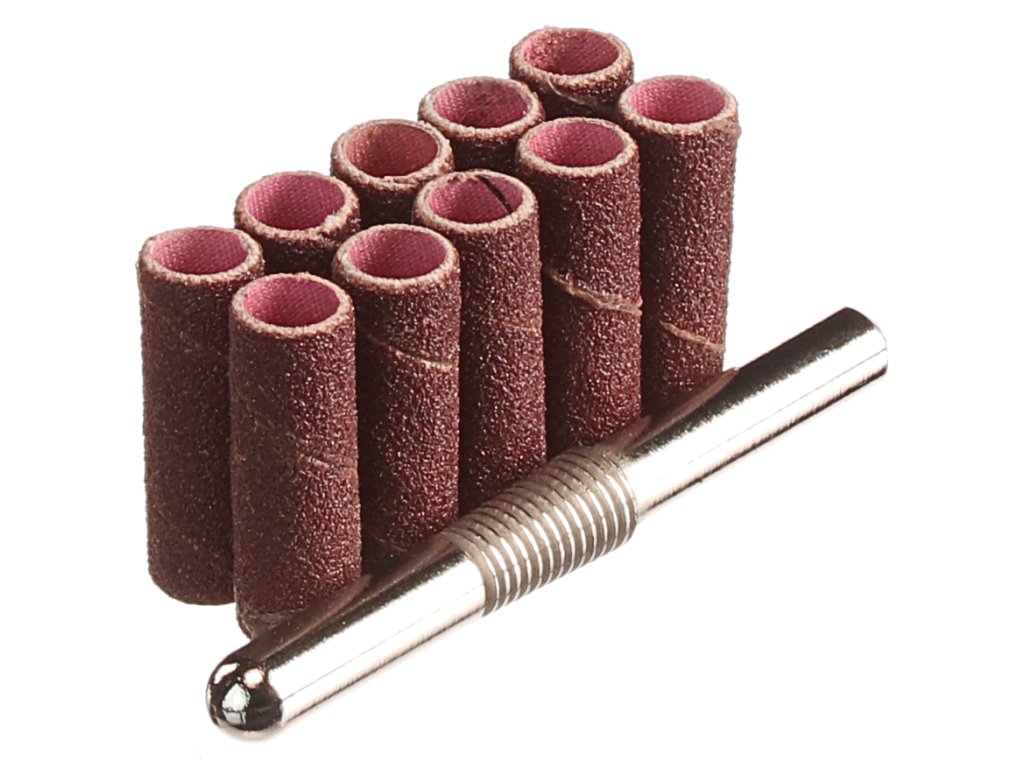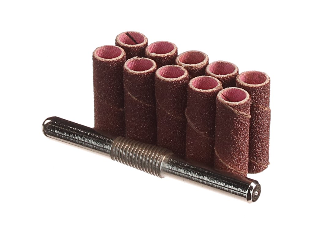 A készlet tartalma 10 darab 6 mm átmérőjű vastagszemcsés csiszológyűrű és száras tartó. Elsősorban fa formára csiszolására alkalmas.