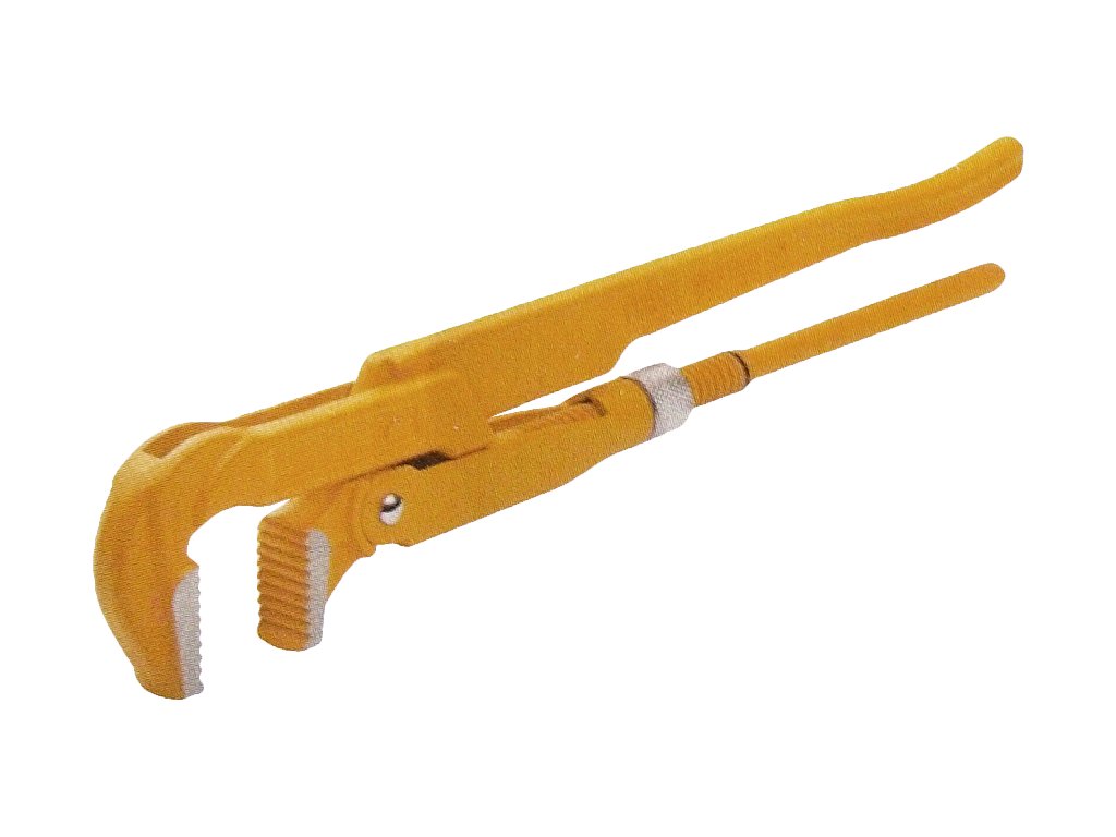 A csőfogó minőségi Cr - V acélból készült. A pofák hajlása 90°, nyithatóság 100 mm, a pofák hossza 75 mm, teljes hossz 680 mm.
