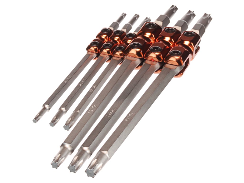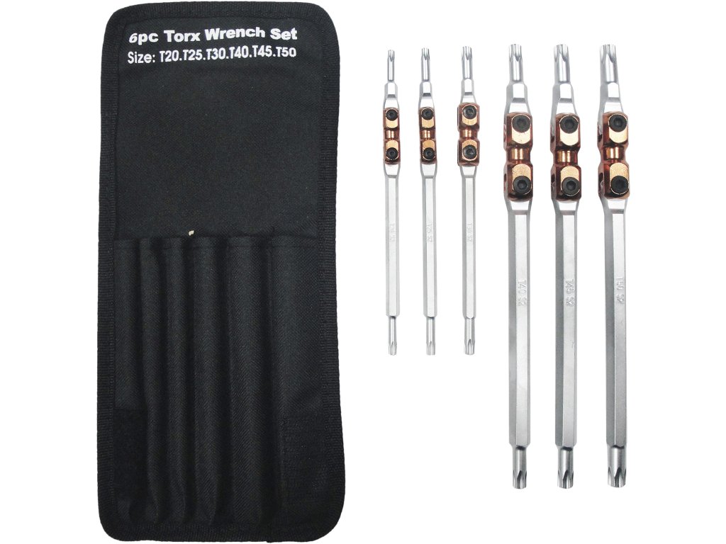 A krómozott, S2 acélból készült Torx kulcsok, alkalmasak különböző berendezések, autók,motorkerékpárok szerelésére és javítására műhelyben és háztartásban. 180°-ban elforgatható (a csukló kb 90°-ig működőképes), méretei: T20; T25; T30; T40; T45 és T50, hossza T20,T25,T30 - hossza 160 mm, T40, T45, T50 - hossza 225 mm. Vászontokban szállítjuk, buborékfóliába csomagolva.