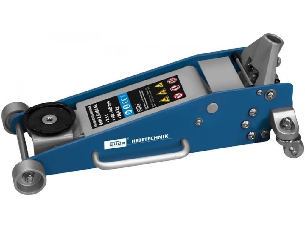 Mobil hidraulikus hever, amelyet autók, pótkocsik stb. emelésére terveztek garázsok vagy otthoni műhelyek körülményei között (→ max. teherbírás: 2,5 tonna). Hibrid konstrukció (→ tömör alumínium keret, acél emelőegység), dupla toló dugattyú (→ gyorsított löket). A tartókar felemelése 100 -460 mm, profilozott teherlemez (→ átmérő: 110 mm; beleértve a gumi üléspárnát is), a terhelések zökkenőmentes csökkentése a leeresztő szelep elforgatásával. Felszerelés: szállítófogantyúk, menetkerekek (→ 2 fix/2 forgó). Tartozékok: puha ujjú emelőkar (→ testvédelem). Teljes méretek (L × W × H, vezérlőkar nélkül): 560 × 300 × 155 mm.