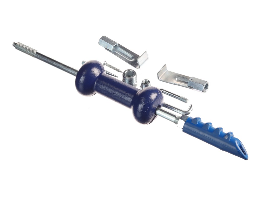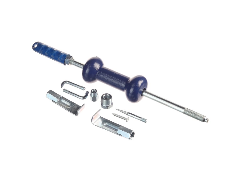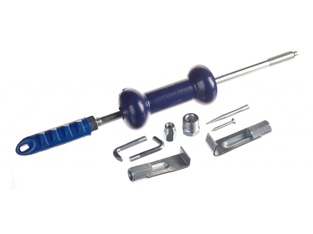 Lehetővé teszi a gépjármű karosszéria horpadt lemezeinek kihúzását. 2 kg tömegű csúszókalapács. A készlet tartalma 2 db kihúzható szerszám közvetlen csatlakozással, 4 db szerszám a mellékelt szűkítőhöz és külső menetes adapterhez kapcsolódással.