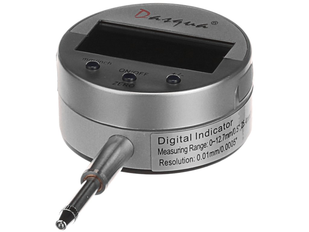 A digitális kijelző használható poros vagy nedves környezetben is. Mérési tartomány 0 – 12,7 mm, a skála beosztása 0,01 mm. Nagy, könnyen olvasható, négy számjegyes kijelző. Mérés mm-ben és hüvelykben. A pozitív és negatív értékváltási lehetőség. Cserélhető hátsó burkolat rögzítés választási lehetőséggel. Műanyag dobozban.