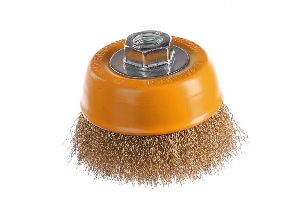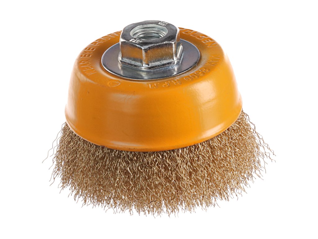 Ideális rozsda és régi lakk eltávolítására fémfelületekről. Drótátmérő: 0,3 mm, dróthossz 30 mm, a kefe átmérője 100 mm (a fazék átmérője 84 mm ), rögzítőcsavar M14 × 2 mm, max. fordulatszám 8 500 ford./perc, a kefe magassága 77 mm.