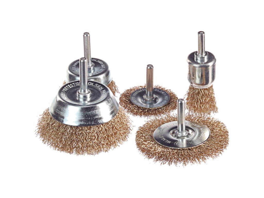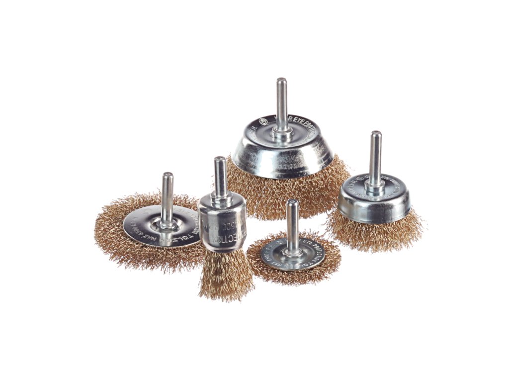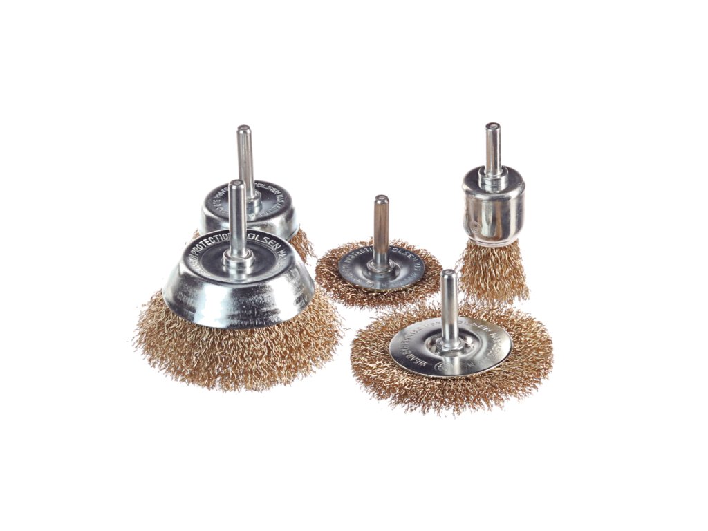 A készlet tartalma: 1 db Ø 25 mm átmérőjű, 27 mm dróthosszú drótkefe, szárhossza 20 mm, teljes hossza 76 mm; 1 Ø 50 mm átmérőjű, 8 mm széles drótkefe, szárhossza 30 mm; 1 db körkefe Ø 75 mm, szélessége 10 mm, szárhossza 30 mm; 1 db Ø 50 fazékkefe (fazékátmérő Ø 38 mm), dróthossz 16 mm, szárhossz 30 mm, teljes hossza 62 mm; 1 db Ø 75 fazékkefe (fazékátmérő Ø 55 mm), dróthossz 22 mm, szárhossz 30 mm, teljes hossza 72 mm; .drótátmérő Ø 0,3 mm; szárátmérő Ø 6,3 mm (a készlet minden keféjénél);.
