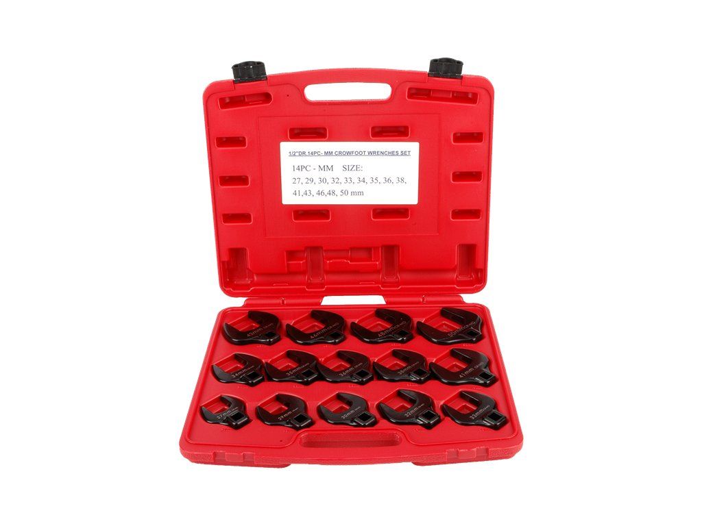 Dugókulcs toldalék - csillagkulcs 1/2" készlet. Ideális ott, ahol csillagkulcsot kell használni, de nincs sok hely a munkához, ezért csak dugókulcsot lehet használni. A doboz tartalma: 27, 29, 30, 32, 33, 34, 35, 36, 38, 41, 43, 46, 48, 50 mm.