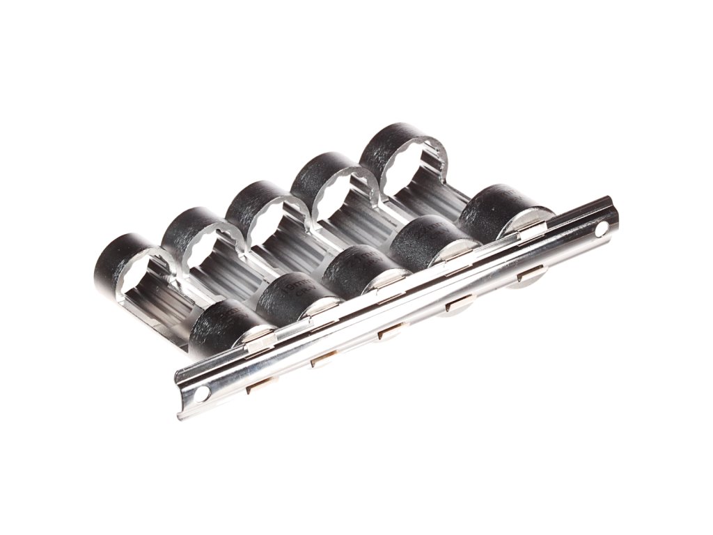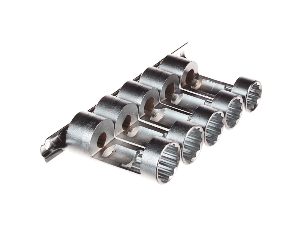 A kulcskészlet alkalmas például az injektorok és a szenzorok be- és kiszerelésére az 1/2"-os imbuszkulcs használatával. A készlet tartalma a 18, 19, 21, 22 és 24 mm méretű kulcs, amihez acélállványt is szállítunk. Anyaga: CrV acél.