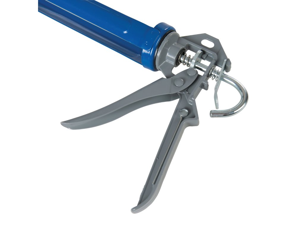 A test acélváza. A gitt vagy a ragasztó könnyű felhordásához a sarkok körül anélkül, hogy meg kellene állnia és meg kellene törnie. A fogantyú egyesíti a dugattyút és a kioldó kart.