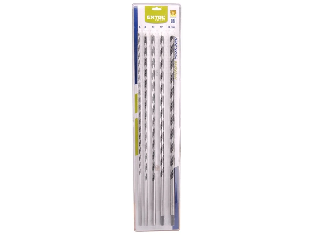 Teljes hosszúság 600 mm, hasznos hossz 450 mm, átmérők: 6; 8; 10; 12; 14 mm, a 12 és 14 mm átmérőjű fúrók szárátmérője csak 10 mm. Anyag: minőségi szénacél. A fúrókkal fa anyagokat (illetve hasonló tulajdonságú egyéb anyagokat) lehet fúrni.