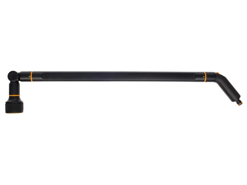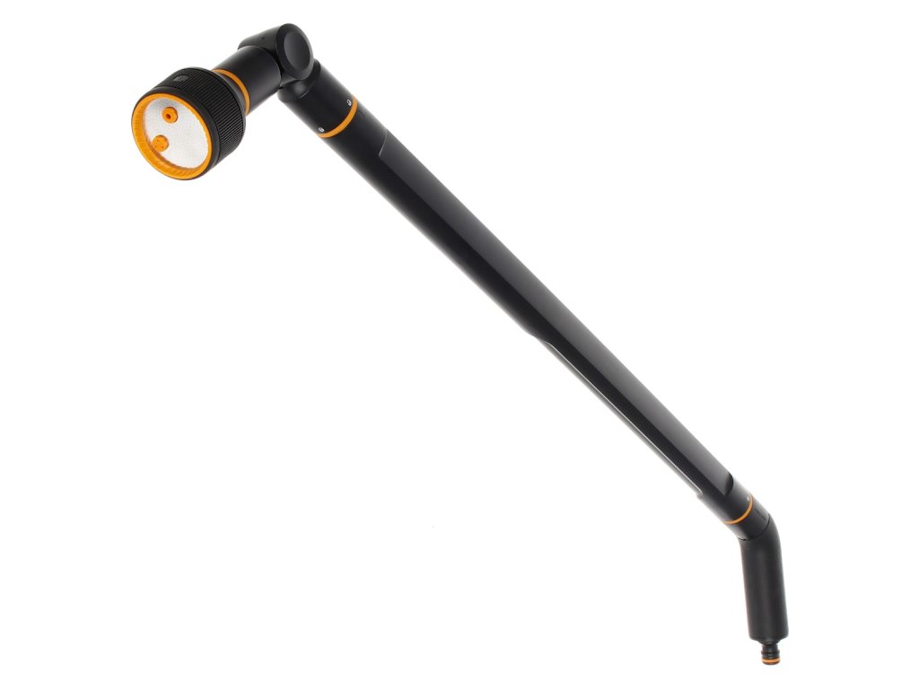 Az öntözőrúd három népszerű öntözési típussal van felszerelve, a fúvókafej 180 fokon belül elforgatható. A cserélhető fúvókafej softGrip felülettel történő elforgatásával típusok választhatók ki: fúvóka, köd, zuhany. A hüvelykujjáram-szabályozás ergonomikus és végtelenül állítható. Kényelmes megtartani, még hideg időben is, összehasonlítva az öntözéshez szükséges fém alkatrészekkel. Az univerzális kapcsolat kompatibilis más márkákkal. Magasság: 87,8 cm, hossza: 12,8 cm, szélesség: 5,6 cm. Súly: 0,44 kg.