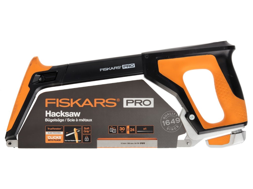 A Fiskars Pro TrueTension™ fémfűrész kiváló minőségű és erős - a fémkeretet kemény munkakörülmények közötti tartósságra tervezték. Az ergonomikus kialakítás támogatja a különböző markolatokat, és lehetővé teszi, hogy különböző szögekben (45° és 90° között) dolgozzon. A 300 mm-es pengével ellátott fűrész fémek, műanyagok, PVC és egyéb anyagok vágására alkalmas. Könnyen kezelheti a csöveket, rézcsöveket, csavarokat vagy körmöket. A Fiskars Pro TrueTension™ 24 TPI fogsűrűségű bimetál pengével van felszerelve, nagyon hosszú élettartammal. Az intuitív TrueTension™ feszítő mechanizmus biztosítja a helyes és problémamentes pengefeszítést. A vasfűrész fogantyúja speciális texturált SoftGrip™ felülettel van felszerelve, amely nem csúszik a kezében, elzárja a nedvességet és megakadályozza a hólyagok kialakulását. Hossza: 300 mm. Súly: 830 g.