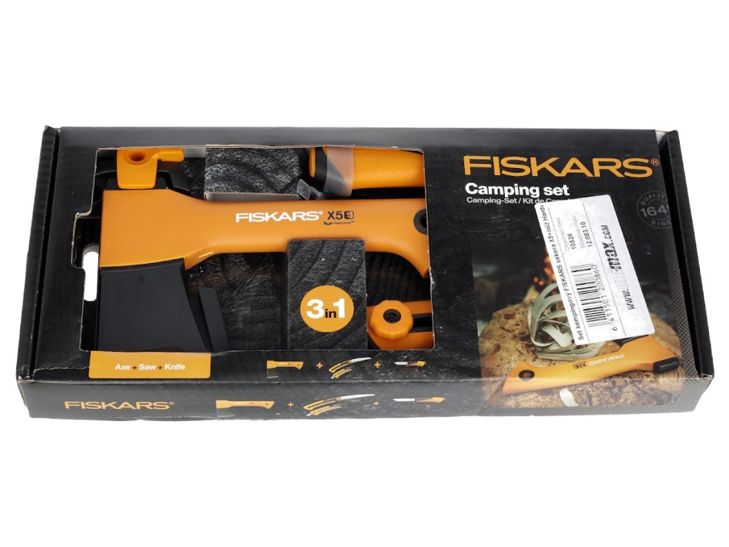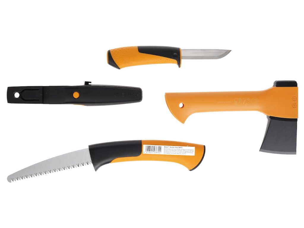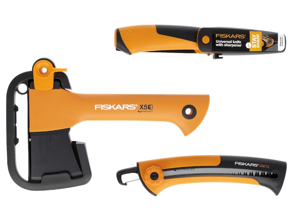 A készlet áll egy kemping fejsze XXS, X5, kerti fűrész Xtract SW73 és univerzális kés Hardver. A fejsze ideális méret túrázáshoz és kempingezéshez. A weboldalon történő regisztráció után 25 év garanciával rendelkezik. A kerti fűrészek egyedülálló behúzható pengemechanizmussal rendelkeznek. Az univerzális kés beépített Staysharp élezővel rendelkezik a kés esetében, ergonomikus fogantyúval, ütésálló.