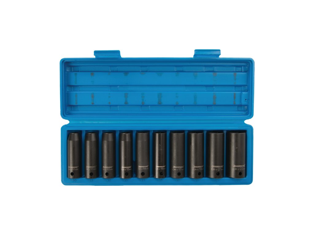 Hatszögletű foglalatkulcsok ütközési szerszámokon való használatra. Precíz, hidegen kovácsolt, edzett króm vanádium acél. Tiszta, lézergravírozott méretű és foszfátozott, korrózióálló. A vastag falak szilárdságot és tartósságot biztosítanak az ismétlődő nagy nyomatékokhoz. Lyuk a szerszám kulcsának rögzítéséhez. 10, 11, 12, 13, 14, 15, 17, 19, 21 és 22 mm-es kulcsokat tartalmaz, műanyag patronban.