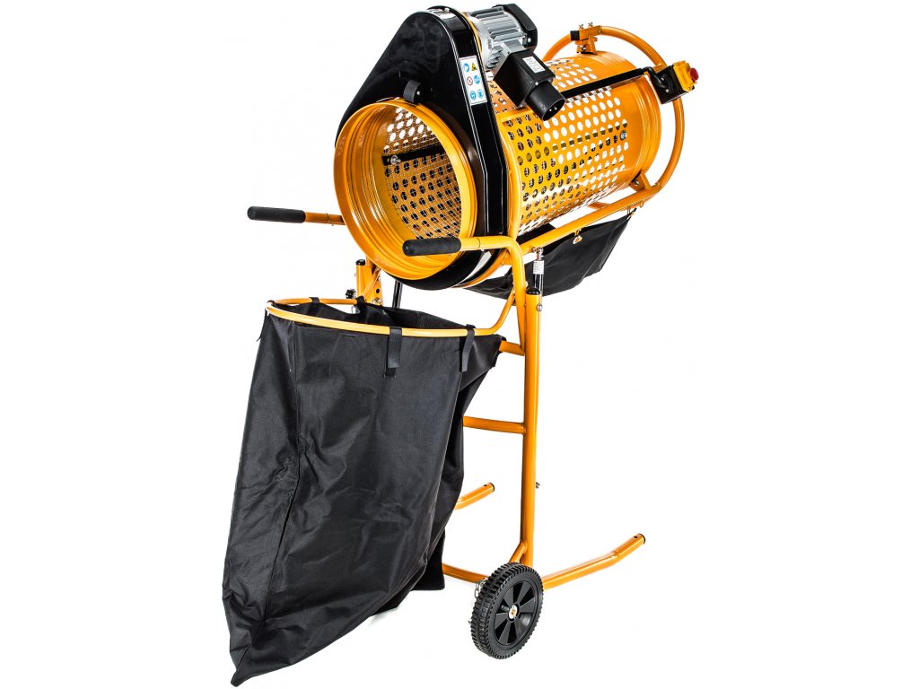 Komposzt, talaj, homok, kavics stb. rostálásához és előkészítéséhez használható. Villanymotor: 230 V/50 Hz/360 W, dob forgási sebessége 45 1/perc, dob átmérője 375 mm, hosszúsága 785 mm. Zsáktartó a hulladék gyűjtéséhez, valamint a szitált anyag felfogásához. Zajszint 89 dB, védettség IP44. méretek összecsukott állapotban 870 × 652 × 950, méretek nyitott állapotban 1 080 × 652 × 1 350 mm. A dob fém keretben forog, amelyen 2 fogantyú található a mozgatáshoz.