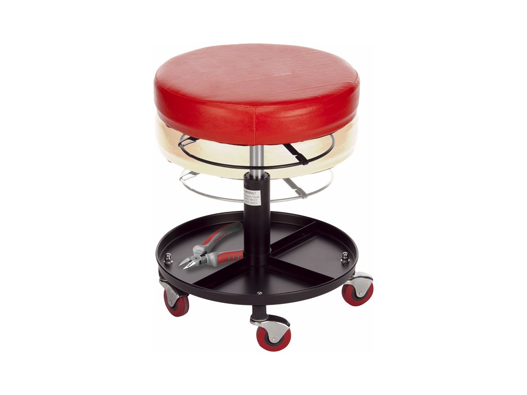 Forgatható ülőke praktikus segítőtárs a műhelyben, szervizben vagy garázsban. Kényelmes ülést kínál alacsony munkapozícióban, ahol gyakori a helyváltoztatás és szükség van a rugalmasságra. A párnázott és rugózott ülőrész hosszabb használat során is komfortos, a magasságállítás pedig lehetővé teszi az egyéni igényekhez való igazítást. Az alsó tárolófelület helyet kínál a szerszámoknak vagy apró alkatrészeknek – mindig kéznél vannak.