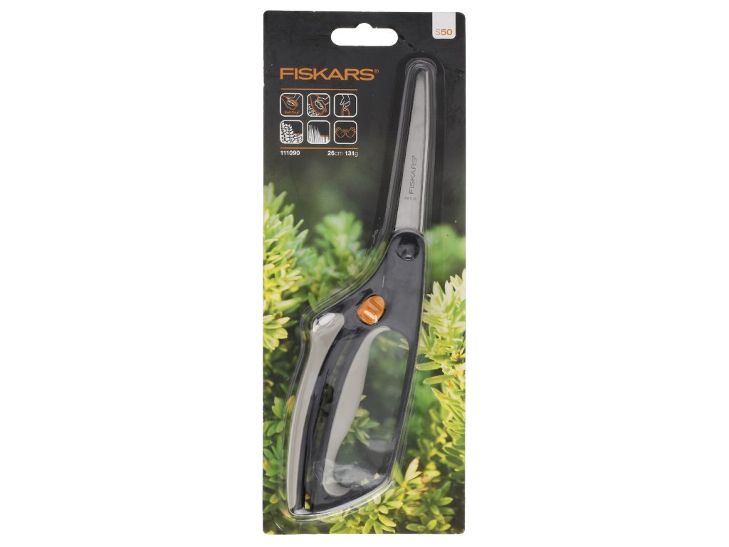 Az S50 fűnyírók alkalmasak fű vágására, buxus, tiszafák és más hasonló növények formázására. A SoftGrip felület növeli a használat kényelmét. A folyamatosan pontos vágást egy központi csavarral állítható pengenyomás garantálja. Az olló visszatérő rugóval rendelkezik, amely csökkenti a fáradtságot, és megkönnyíti a vágást azáltal, hogy minden vágás után simán kinyitja a fogantyúkat. Súly: 100 g. Eredeti Fiskars szám: 111090 Megnevezés: S50
