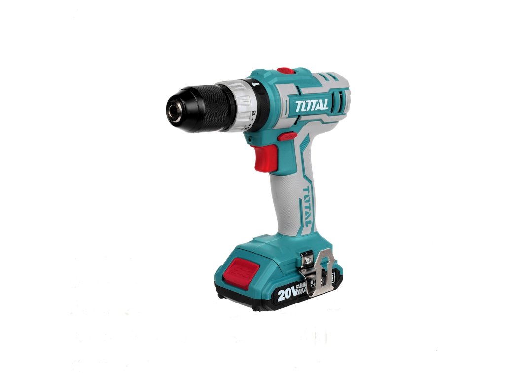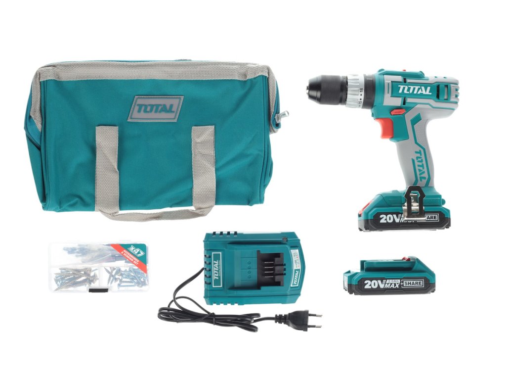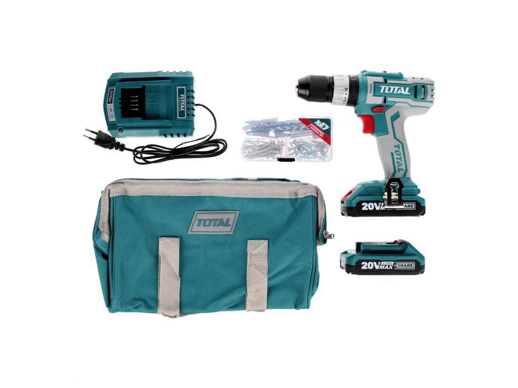 Könnyű és erőteljes, kétfokozatú fúróakumulátor csavarhúzó ütéssel és nagy meghúzási nyomatékkal fémben és fában történő fúráshoz és csavarozáshoz. Az akkumulátor a Total sorozat összes 20 V-os akkumulátorgépében használható. A Li-ion technológiának köszönhetően az akkumulátorok bármikor feltölthetők anélkül, hogy csökkentenék kapacitásukat. Li-ion akkumulátor is veszít energiát miatt önkisülés nagyon lassan és tart hosszú ideig töltött.- Akkumulátor: 20 V Li-ion (2x)- súly akkumulátorral: 1,4 kg- Akkumulátor kapacitása: 2000 mAh- L / P futás: igen- max. nyomaték: 45 Nm- akkumulátor töltés kb.: 1 h- sebesség: I. 0 - 400 / perc, II. 0 - 1500 / perc- kalapácsok száma: 0 - 22500 / perc- fúró átmérője: 0,8 - 10 mm- tartozékok: táska, 50 db tartozékból álló készlet - gyorskioldó fej: fém 3/8"- fokozatú meghúzás. nyomaték: 18+fúrás+ütközés- a csomagtartóban: nincs