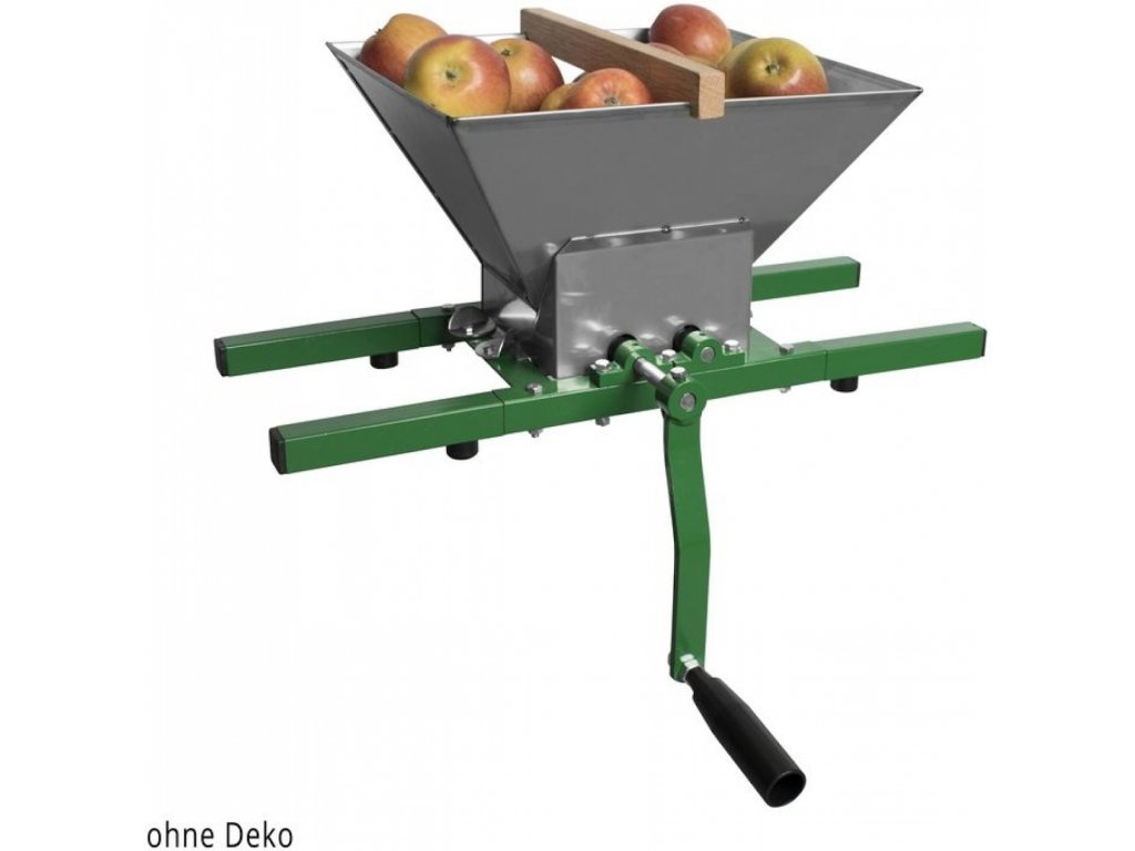 Kézi daráló, amelyet a gyümölcsök vagy bogyók összetörésére terveztek, mielőtt megnyomná őket. Alkalmas magok (→ alma, körte), bogyók és nyers burgonya őrlésére. Felépítés: rozsdamentes acél garat, ellenforró préshengerek (→ 2; 8 fogaskerék), tartókeret. Töltőtartály: 340 x 300 mm Garat térfogata: 7 lTotal méretek (L x W x H): 570 x 495 x 265 mm