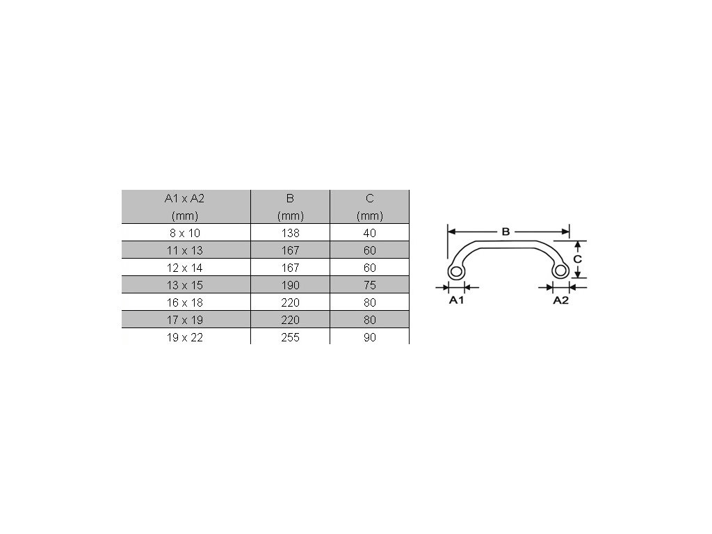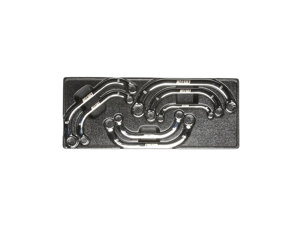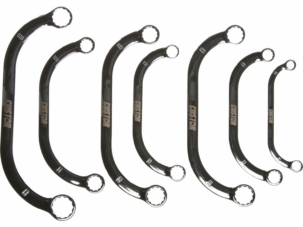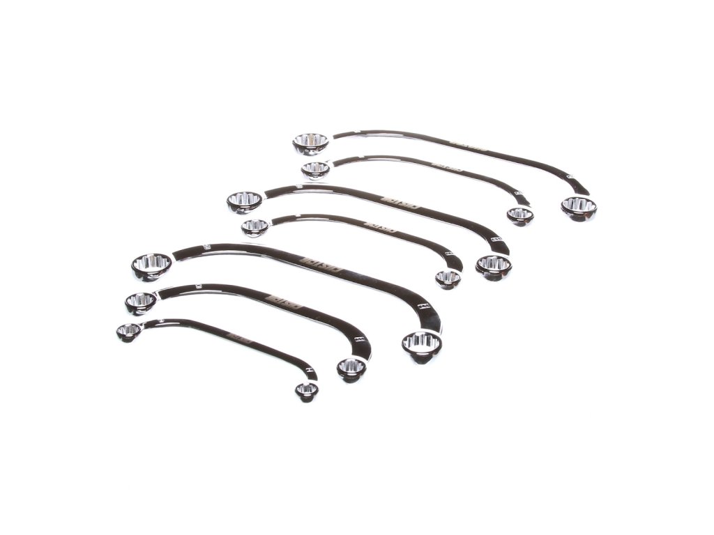 A készlet tartalma 7 db hajlított csillagkulcs: 8 × 10, 11 × 13, 12 × 14, 13 × 15, 16 × 18, 17 × 19, 19 × 22 mm. A kulcsok anyaga CrV.