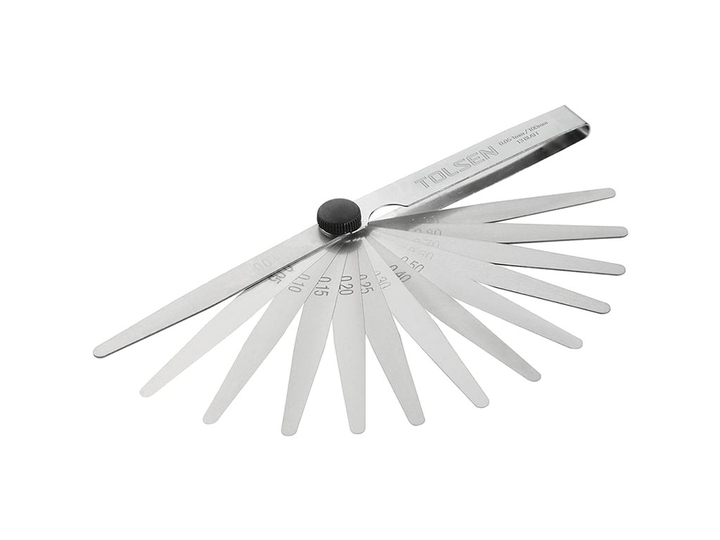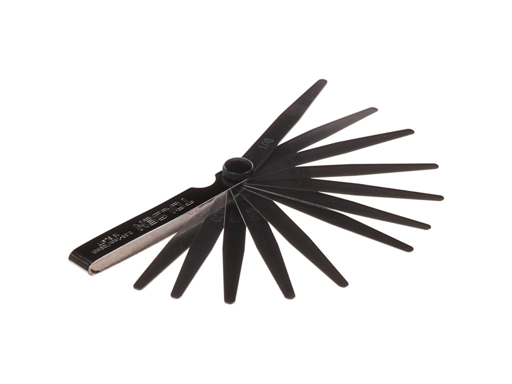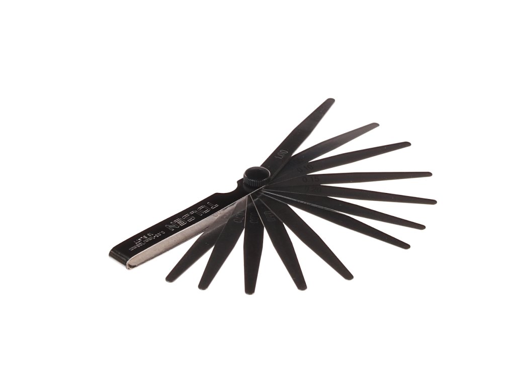 A készlet 13 polírozott 100 mm hosszú hézagmérőt tartalmaz krómozott tokban. 0,05-0,30 mm 0,05 mm-ként, 0,30 -1,00 mm 0,10 mm-ként.