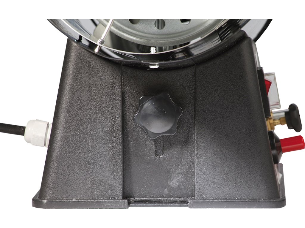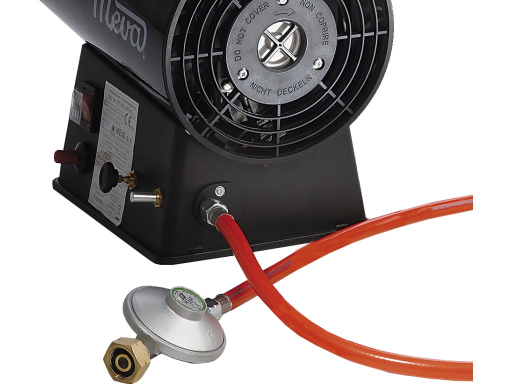 Fekete lakkozásos kivitelű hőgenerátor piezogyújtással, termobiztosítékkal, a fűtőtest túlmelegedése elleni biztosítékkal és gázszabályozással. Az ár tartalmazza az 5 kg és 10 kg gázpalackhoz csatlakoztatásra szolgáló tartozékokat. - teljesítmény 9 – 30 kW, - fogyasztása 645 – 2200 g/óra, - kiadósság 1100 m3, - tömege 6,4 kg.