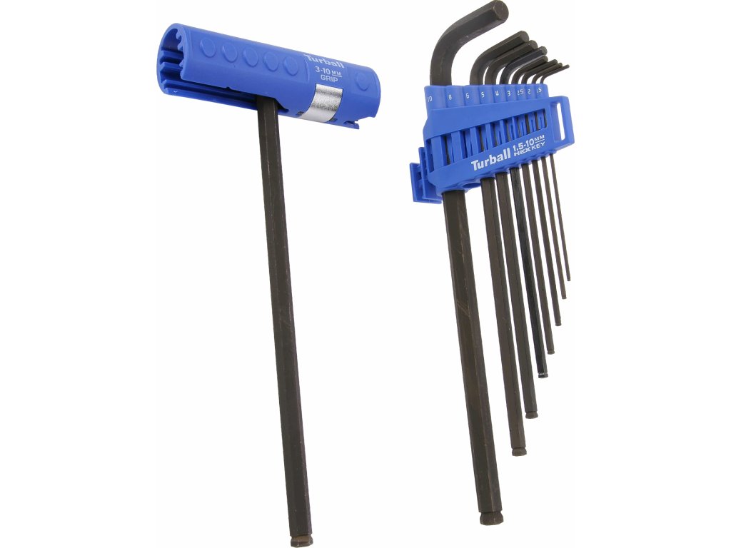 L-imbuszkulcs készlet, műanyag szerszámtartóban, többfunkciós levehető fogantyúval a kényelmes kulcsfogáshoz 3 különböző kulcshelyzetet tesz lehetővé. A kulcsok CrV acélból készültek, a hosszabbik végükön gömbös kialakítással, hogy a kulcsot ferdén is a csavarfejbe lehessen dugni. A kulcsok felülete feketített. Méretek: 1.5-2-2.5-3-4-5-6-8-10 mm.
