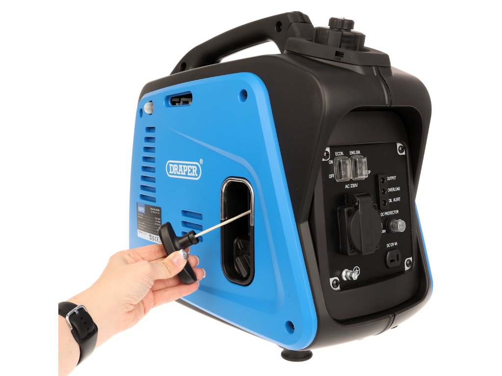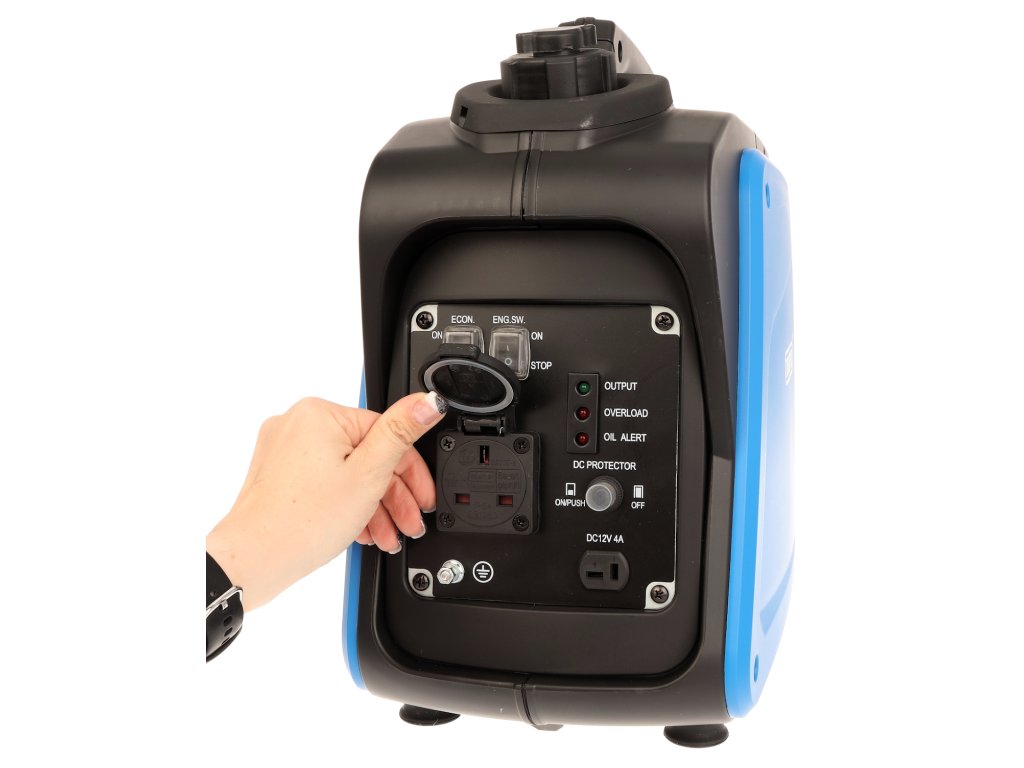 Hordozható inverter generátor könnyű kompakt kivitelben, amelyet egy 4 ütemű, 60 cm3-es benzinmotor hajt, 3 literes tartályral, amely kézi hátrameneti indítórendszerrel van felszerelve. A zárt háznak köszönhetően csendesebb, mint a hagyományos generátorok. A generátor technológia tiszta szinuszos kimenetet tesz lehetővé, amely tiszta és stabil teljesítményt biztosít az érzékeny elektromos és elektronikus eszközök, például laptopok, mikrohullámok, indukciós főzőlapok és televíziók működéséhez. 1 × 230 V-os váltakozó áramú aljzatot és 1 × 12 V/4 A DC kimenetet biztosít. Generátor teljesítménye 1000 W, rövid távú max. 1100 W, zajszint 93 dB(A). Folyamatos működési idő 4,4 óra 100%-os terhelés mellett. 12 V-os DC töltőkábellel, gyújtógyertya kulccsal, csavarhúzóval és EU > UK hálózati adapterrel van ellátva. Súly 9 kg, méret 480 × 255 × 425 mm.