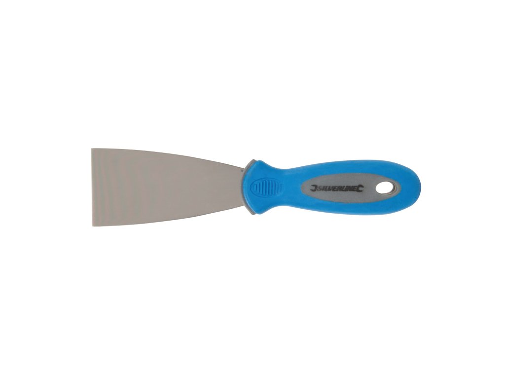 Korrózióálló, rugós edzett acélból, kétszínű, puha fogantyúból készült, lógó lyukkal. A tömések zökkenőmentes felhordásához.