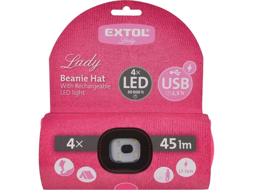 Kupak fényszóróval 4 × 45 lm, USB töltés, rózsaszín, univerzális méret
