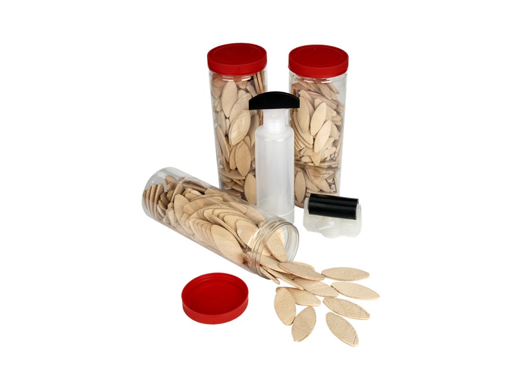 A készletben 3 csomag, különböző méretű lamella (150 db 0-ás méret, 125 db 1-es méret, 100 db 2-es méret), adagolós ragasztópalack és henger található.