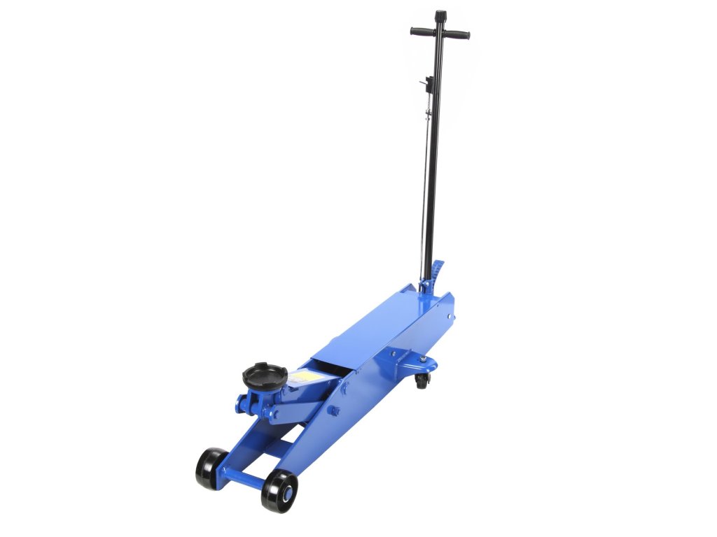 Profi hidraulikus emelő, a kitámasztó fejet pedálos pumpával lehet gyorsan a teherhez felemelni. A teher süllyesztése a biztonság érdekében lassított, praktikus szerszámtároló az alsó szerszámok részére, a belső kerekeken az emelő könnyen mozgatható. Teherbírás 10 t, minimális magasság 160 mm, maximális magasság 560 mm.