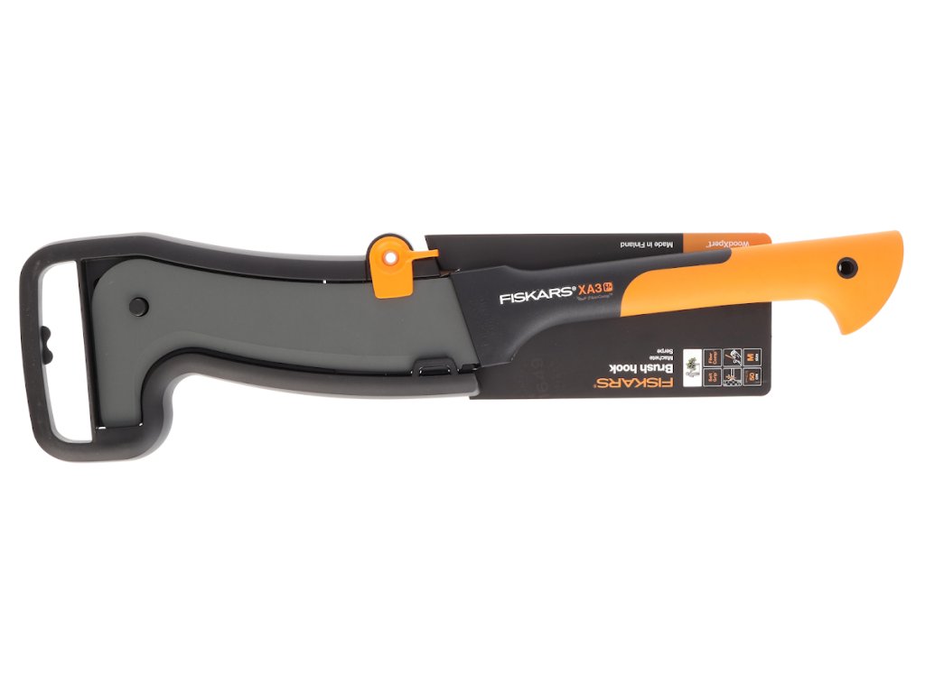 Kisebb ágak eltávolítására használják (csemeték és cserjék esetében), valamint a kéreg rönkökből történő hámozására. Erős, tartós és könnyű anyagból készült, üvegszálakkal megerősítve. Kényelmesen megragadható fogantyúval rendelkezik, amely elnyeli az ütéseket. Ideálisan kiegyensúlyozott. A penge és a fogantyú szorosan kapcsolódik. Szélesség: 120 mm, hossz: 505 mm, súly: 450 g. Eredeti Fiskars szám: 126004. Megnevezése: XA3