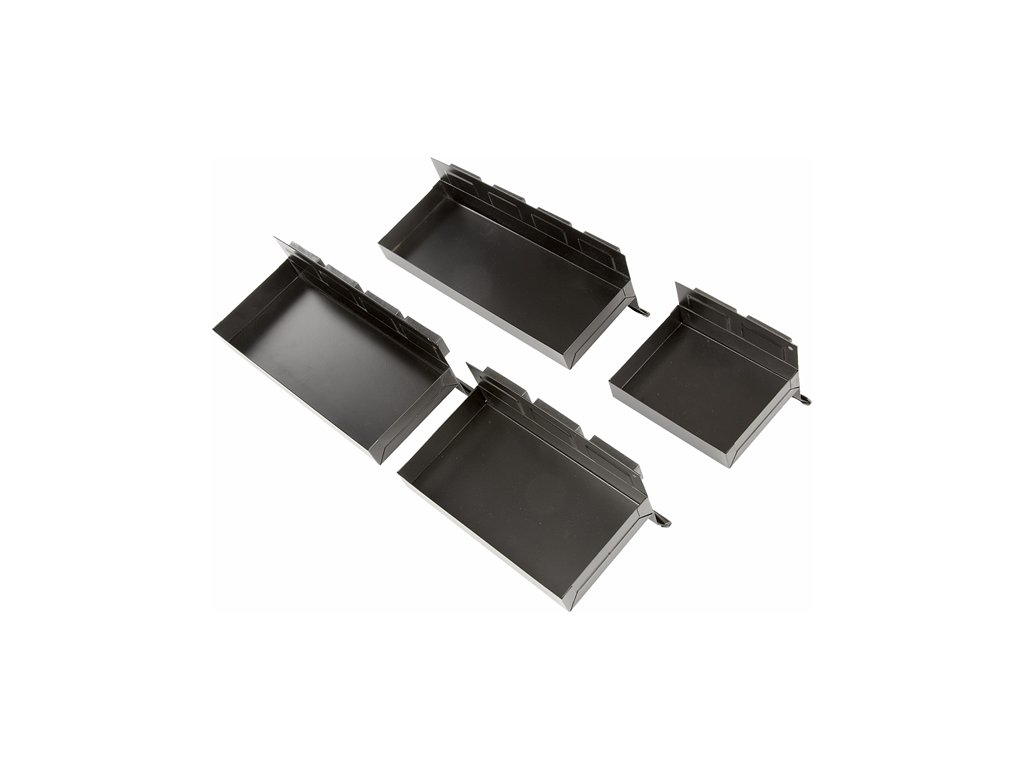 4 darab, különböző méretű, felakasztható, mágneses rekesz, a rögzítésről néhány erős mágnes gondoskodik. A mágnesek és a támasztó élek puha műanyag burkolattal rendelkeznek, hogy a rögzítési alapfelület védett legyen a karcolással szemben. A polcok tárolómélysége minden méretnél 115 mm (a falak oldalai 15 mm magasak), a polcok teljes magassága 120 mm, az egyes hosszok: 317, 270, 210 és 150 mm.