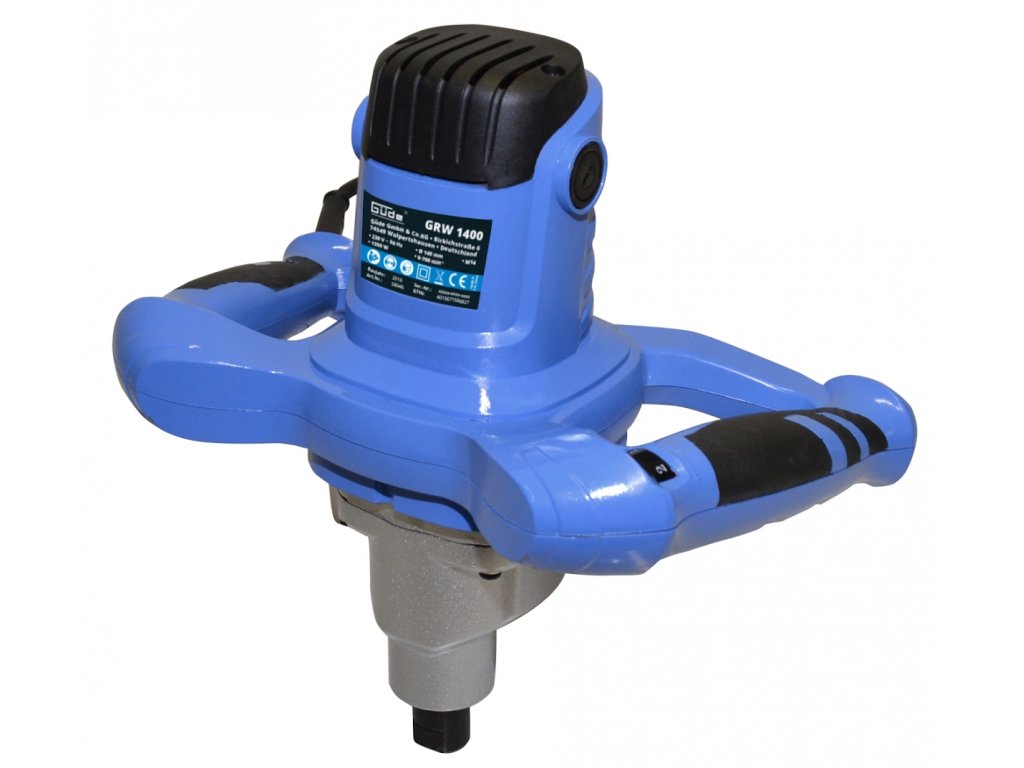 Praktikus keverő, amelyet por építőanyagok (→ habarcs/beton/vakolat), festékek, lakkok stb. (→ max. keverési térfogat: 65 l)6 fokozatú sebesség előválasztás (→ tartomány: 0 - 760 rpm; pontos sebességbeállítás a keverék összetevőinek/viszkozitásának megfelelően). Motor 1.400 W, kétpontos biztonsági kapcsoló, 2 m csatlakozó elektromos kábel H05 VV-F. Felépítés: íves fogantyúk puha párnázóbetéttel, keverő habverővel (→ hossza × átmérő: 600 × 140 mm, jobbkezes kosárral finomszemcsés / durva szemcsés építőanyagok keveréséhez). Tartozékok: oldalsó villáskulcsok (2). Teljes méretek (l × w × d): 880 × 320 × 200 mm, védelmi osztály: II, védelmi típus: IP 20, LWA hangteljesítményszint: 100 dB (A).
