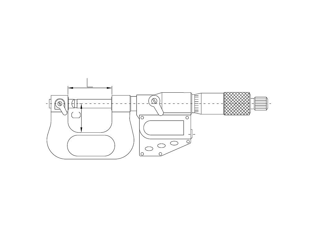 Analóg mikrométer rögzített, nem forgó orsóval, surlódó dobbal és acél lakkozott kerettel öt pár érintővel különböző menetek mérésére (a felső szög 60°, különböző emelkedés). Alaptartozékok: S kulcs, 5 pár érintő, jótállási jegy, használati útmutató, kalibráló tanúsítvány, műanyag tok.