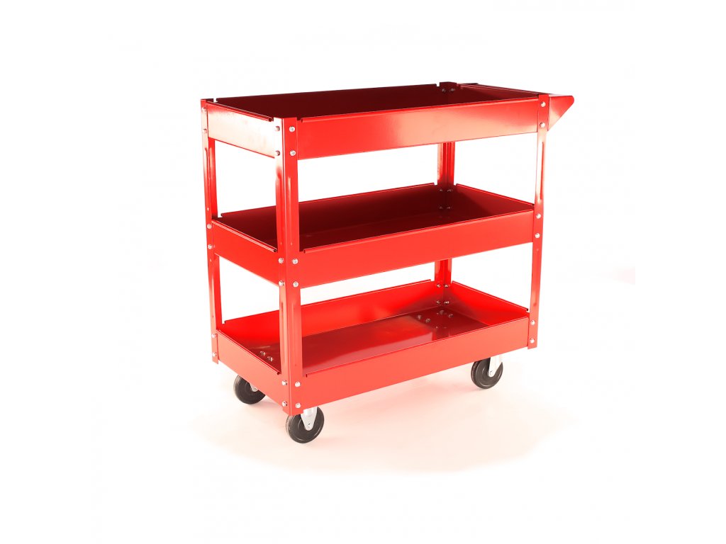 Alkalmas szerelőanyagok és kötőelemek, szerszámok és további segédeszközök tárolására. A kocsi 3 db 745 × 390 × 90 mm méretű polccal, 200 mm távolsággal a polcok között, csavarozott acélszerkezet 840 × 410 × 660 mm, 2 forgógörgő és 2 rögzített görgő 100 × 22 mm, teljes mérete 840 × 410 × 780 mm, teljes teherbírása 100 kg.