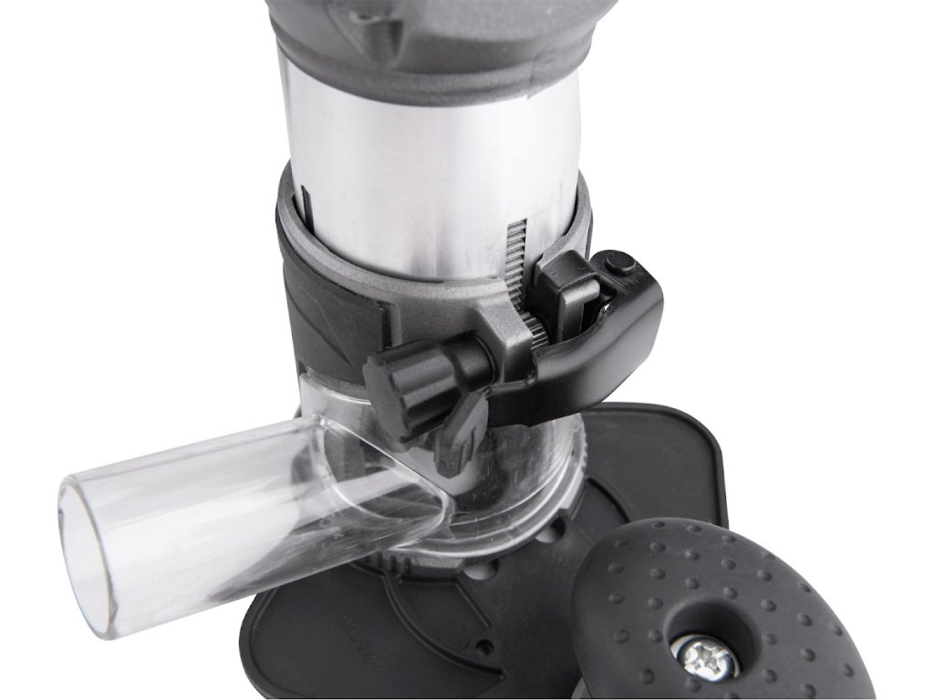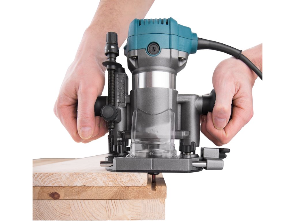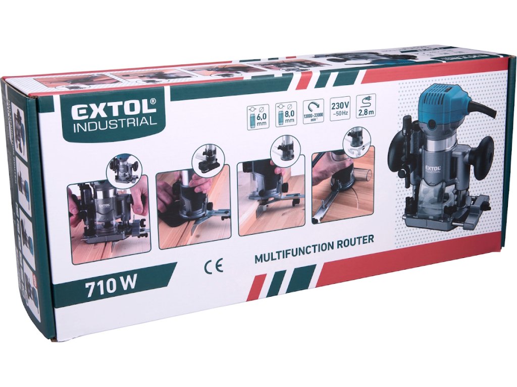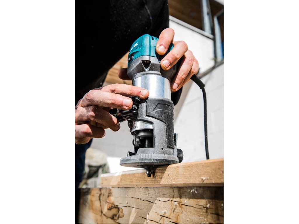 A marógépet úgy tervezték, hogy a használt maró alakjától függően különböző formájú éleket, profilokat, lyukakat marjon a fában. A marógép 6 és 8 mm-es szárú vágókkal működhet. A marógép szíve egy nagy teljesítményű, 710 W-os motor, amelynek sebességszabályozása 13 000 és 33 000 / perc között van, ami lehetővé teszi, hogy a sebességet az anyag típusához igazítsa. Elektronikus sebességszabályozással is fel van szerelve, amely lehetővé teszi, hogy terhelés alatt is állandó sebességgel rendelkezzen, és egy "puha indítás" funkcióval, amely biztosítja a zökkenőmentes indítást ütközések nélkül. A pontos munka érdekében a merülő alap mélységmegállítóval van felszerelve, amely lehetővé teszi a pontos elmozdulást tized milliméteres sorrendben. Keményfával végzett munka során használhat egy toronymegállítót, amelynek segítségével az őrölt mélységet több rétegre osztja, és fokozatosan eltávolítja őket. A csomag három különböző alapot tartalmaz: magával ragadó, egykezes és alap fogantyúval. Lehetőség van a falak közelében végzett munkára alkalmas függő alap megvásárlására is. A marógép könnyen eltávolítható az alapról, és az elvégzett munkától függően egy másik alapba helyezhető. Ez a modularitás nagyban megkönnyíti és felgyorsítja a munkát. Feszültség/frekvencia 230 V/50 Hz, teljesítmény bemenet 710 W, sebesség 13 000 - 33 000 / perc, szerelhető 6 és 8 mm, emelési magasság (merülési alap) 38 mm, tápkábel 2,7 m, a gép súlya süllyedő alapnal 3 kg.