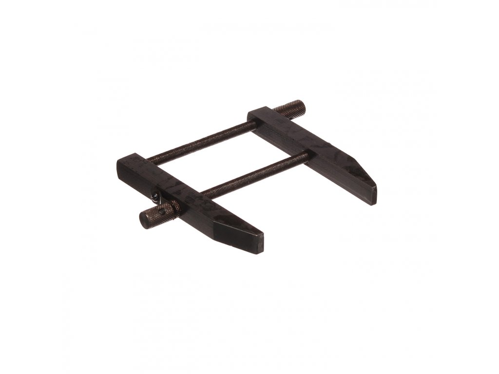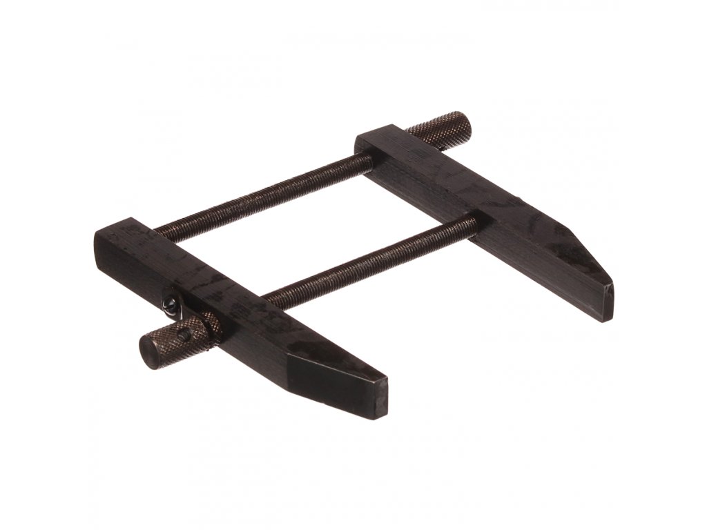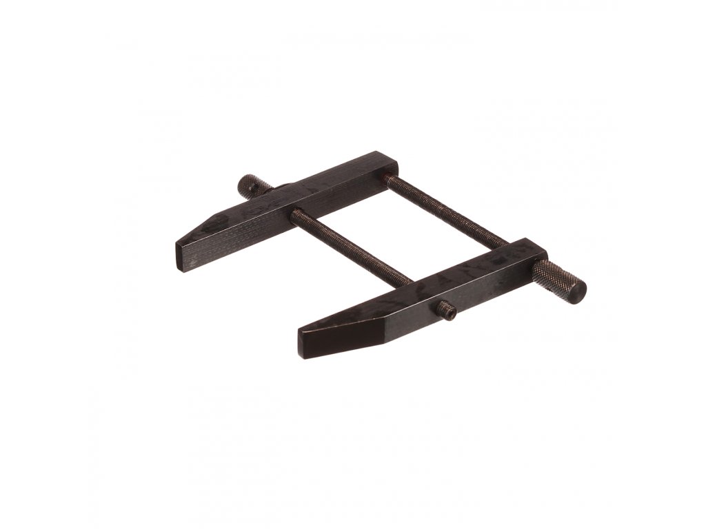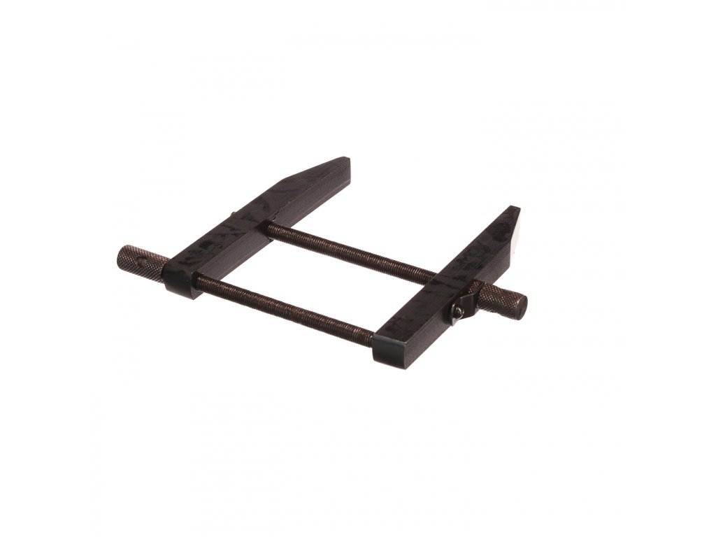 Acél szorító, amely a dupla megvezetésnek köszönhetően pontos és párhozamos befogást és pofamozgatást tesz lehetővé. Felületkezelés feketítéssel, befogható méret 100 mm, a pofák hossza 150 mm, ebből a munkafelület mérete 73 mm. A hengeres bordázott fejekben Ø 5 mm átmérőjű furat található.