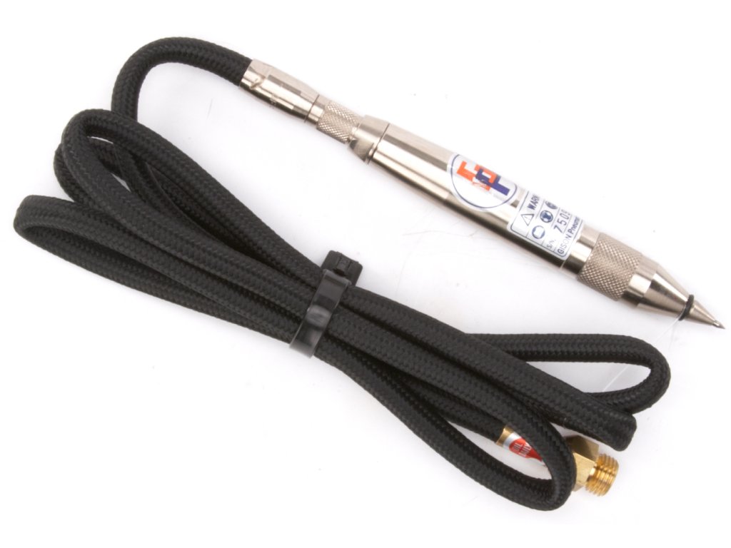 A karcoló tollal kemény anyagokra, pl. acél, kerámia, üveg, kő lehet karcolásos feliratokat létrehozni. Különösen alkalmas a személyes használatra kiadott szerszámok és gépek megjelölésére. Az ütési erőt a fogantyú végén található szelep elforgatásával lehet beállítani a különböző anyagokhoz. Ütési sebesség 34 000 1/perc, levegőfogyasztás 50 l/perc, üzemi nyomás 6,3 bar, hosszúság 160 mm, levegő bemenet – 1/4"-os külső menet (tömlőhöz).
