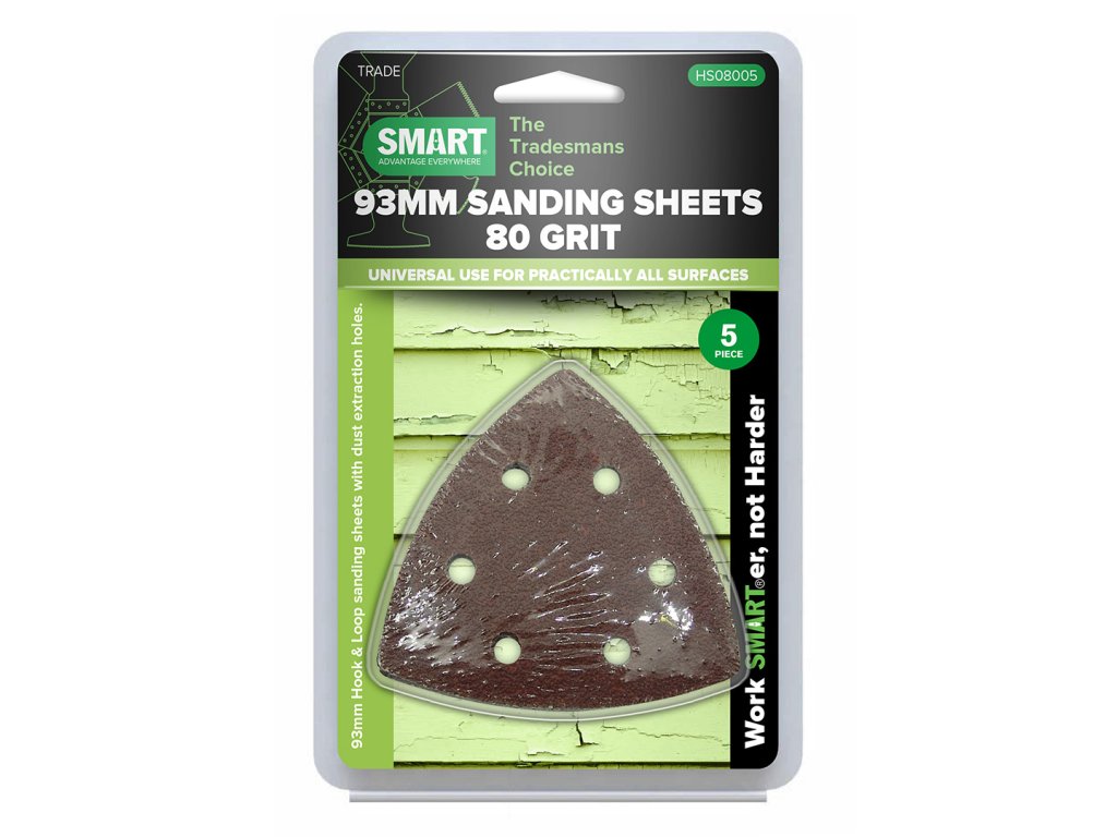 Nagy-Britanniában készült csiszolópapír. Alkalmas kézműveseknek és barkácsolóknak. Szívónyílásokkal. Ideális fa csiszolására és festék eltávolítására. Vastagság 80. Élhossz 93 mm. A SMART márka a világ legjobb többfunkciós oszcilláló fűrészlapjait gyártja, és ez az egyetlen olyan márka a piacon, amely saját pengéit a szabadalmaztatott STARLOCK tartozékkal kombinálja.