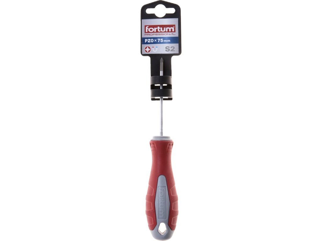 Ergonomikus fogantyú kemény PP műanyagból, a felületen kiváló minőségű csúszásgátló TPR gumival lágyítva növeli a csavarhúzó csavaró erejét az S2 acél matt felületében HRC 58 - 60 keménységgel.- Anyag: S2- PZ 0 × 75 mm
