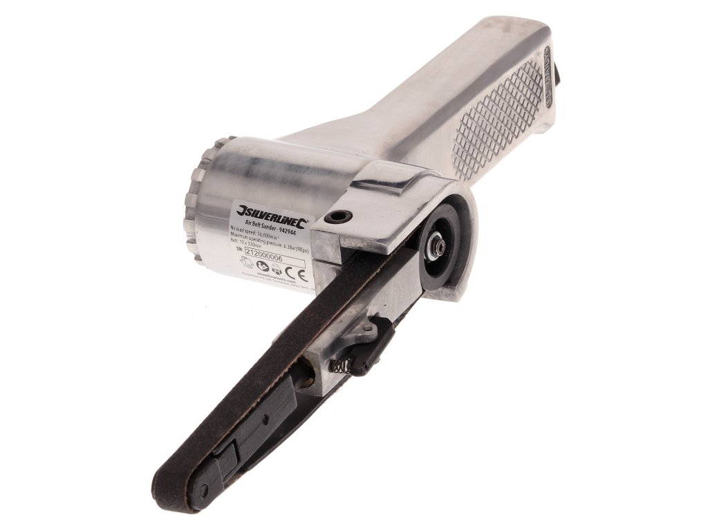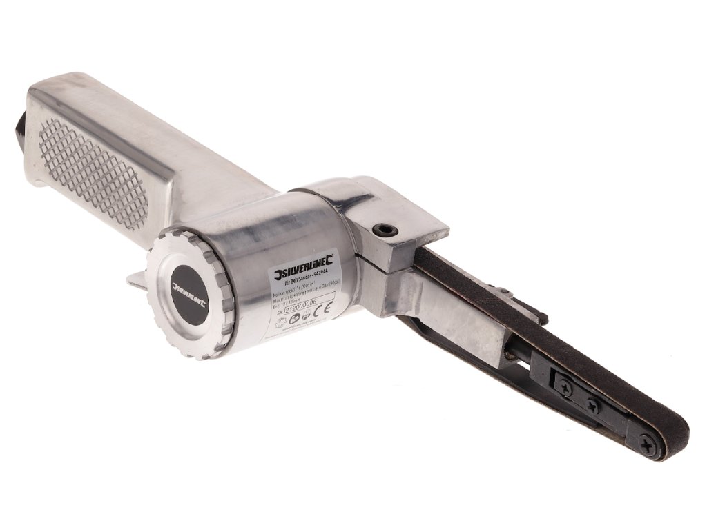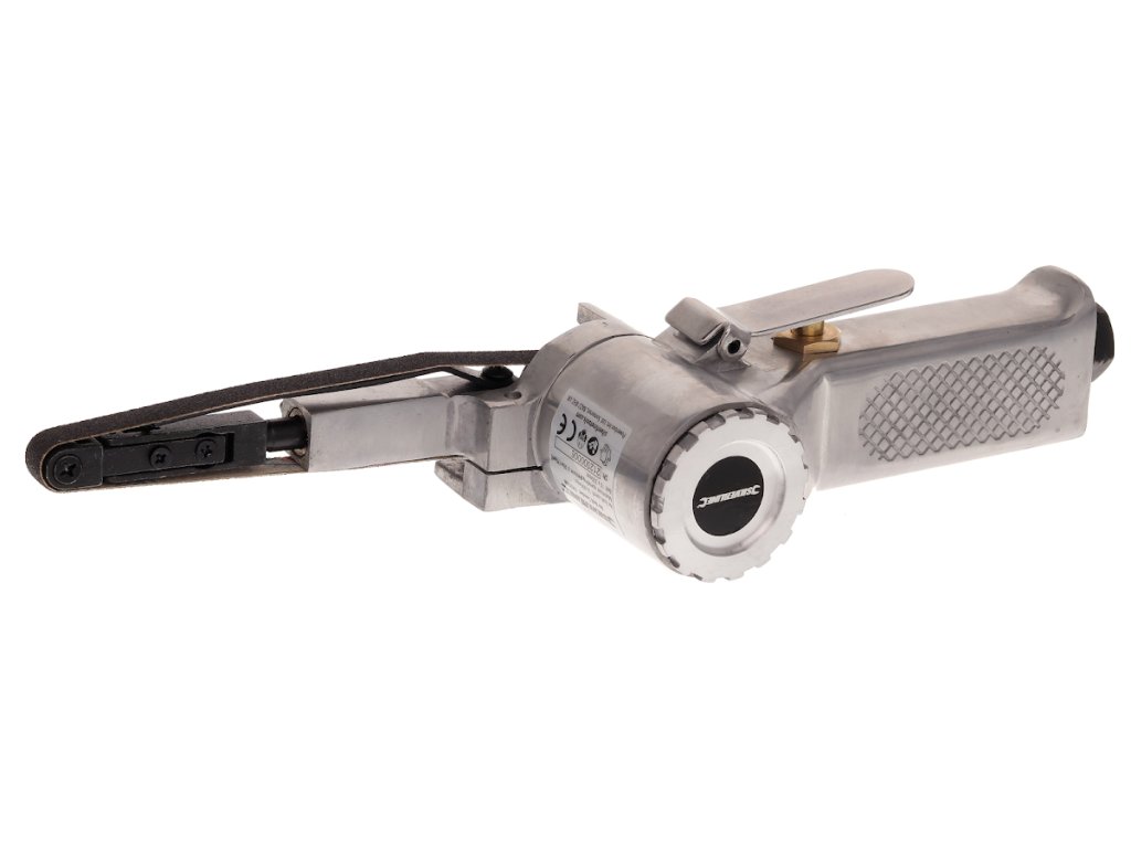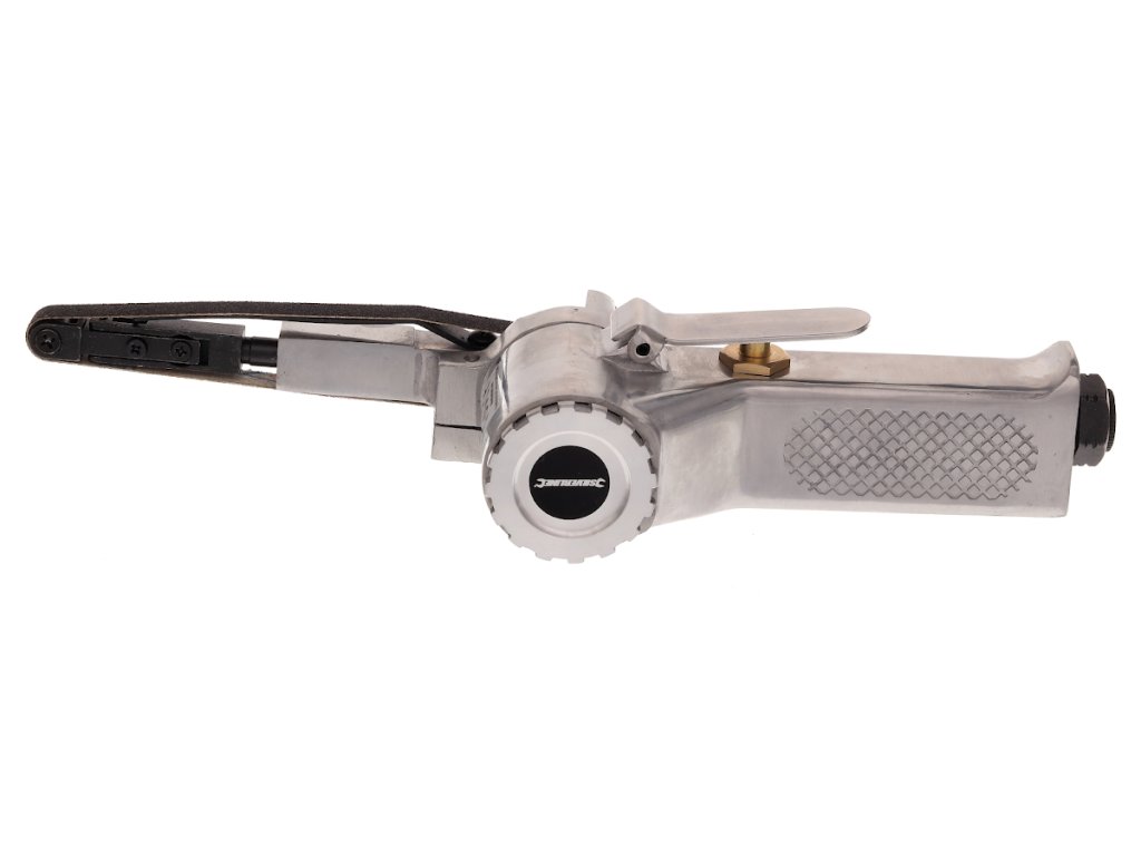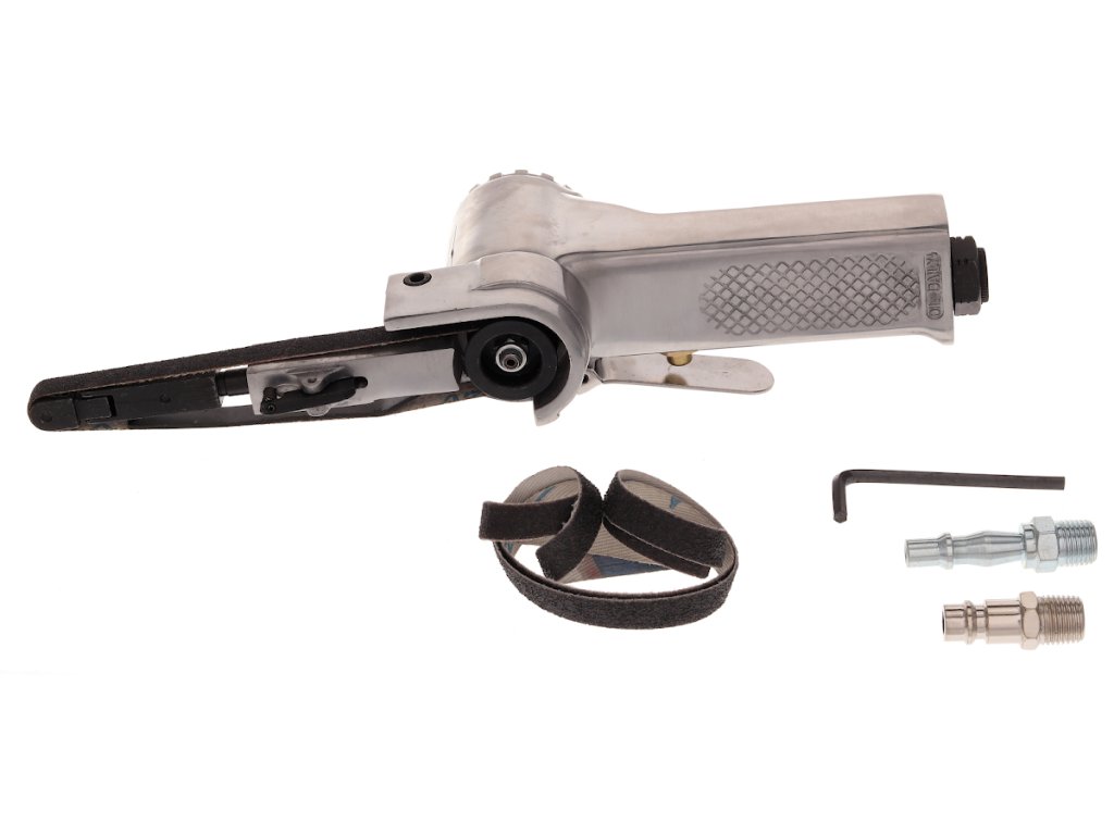 Sökóldalú, léghajtású szalagcsiszoló 360°-ban állítható övkarral. Automatikus feszítőkar a könnyű telepítéshez és az öv beállításához. Szalagcsiszolo sebesség 995 m/perc, maximális üzemi sebesség 16 000 ford/perc. Csiszolószalag mérete: 10 × 330 mm. Maximális üzemi nyomás: 6,3 bar (90 psi). Levegőfogyasztás 4 cfm. Tartalmazza az Egyesült Királyság és EU légcsatlakozóit