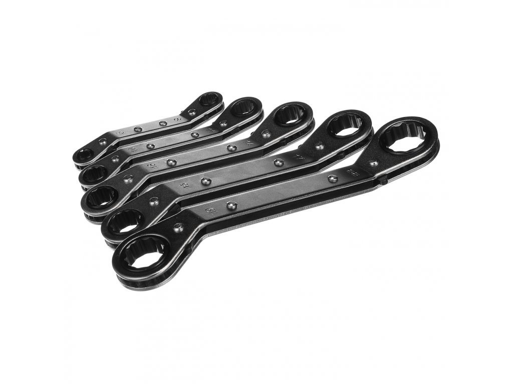 Mindkét oldalon racsnis csillagkulcsból álló készlet, 25°-kal tekerve. A készlet a következő méreteket tartalmazza: 6 × 8; 10 × 11; 13 × 14; 15 × 17 és 19 × 22 mm.