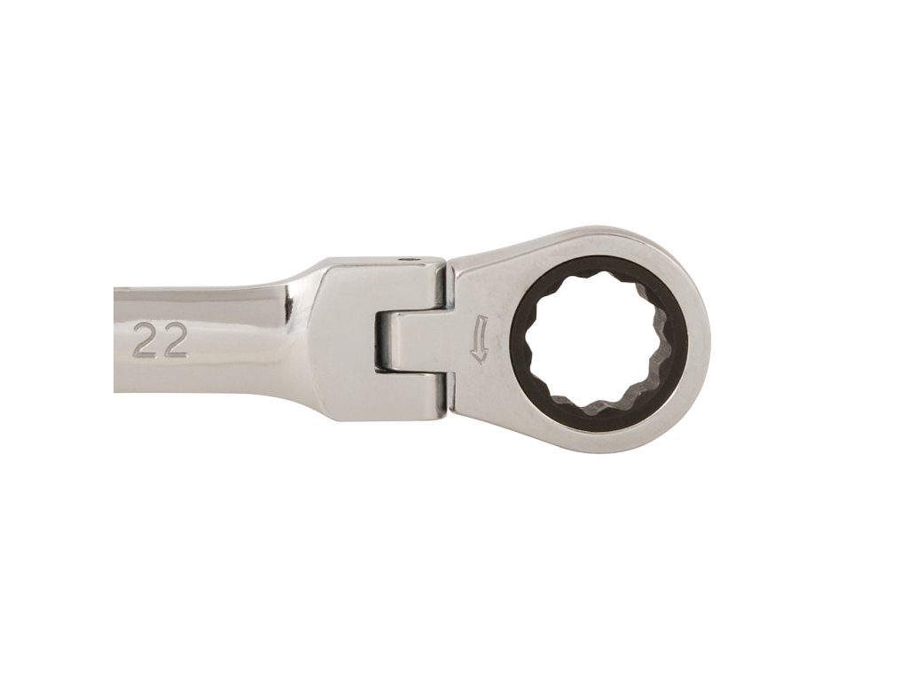 Edzett és edzett króm vanádiumkulcs polírozott felülettel a korrózióállóság érdekében. Oldalsó és racsnis kulcs kombinációja 5 ° -os racsnis, 180 ° -os forgatható fejjel. Könnyű hozzáférést tesz lehetővé szűk helyeken.